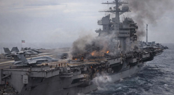Even without a direct hit, the environment surrounding the carrier has grown increasingly volatile. Warships maneuver carefully. Fighter jets launch and land with precision. Every radar signal is analyzed, every movement tracked. The tension is constant, invisible, and unrelenting.