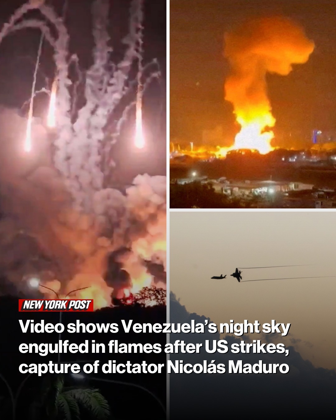 🚀🚀Video shows Venezuela’s night sky engulfed in flames after US strikes, capture of dictator Nicolás Maduro🛬🛬